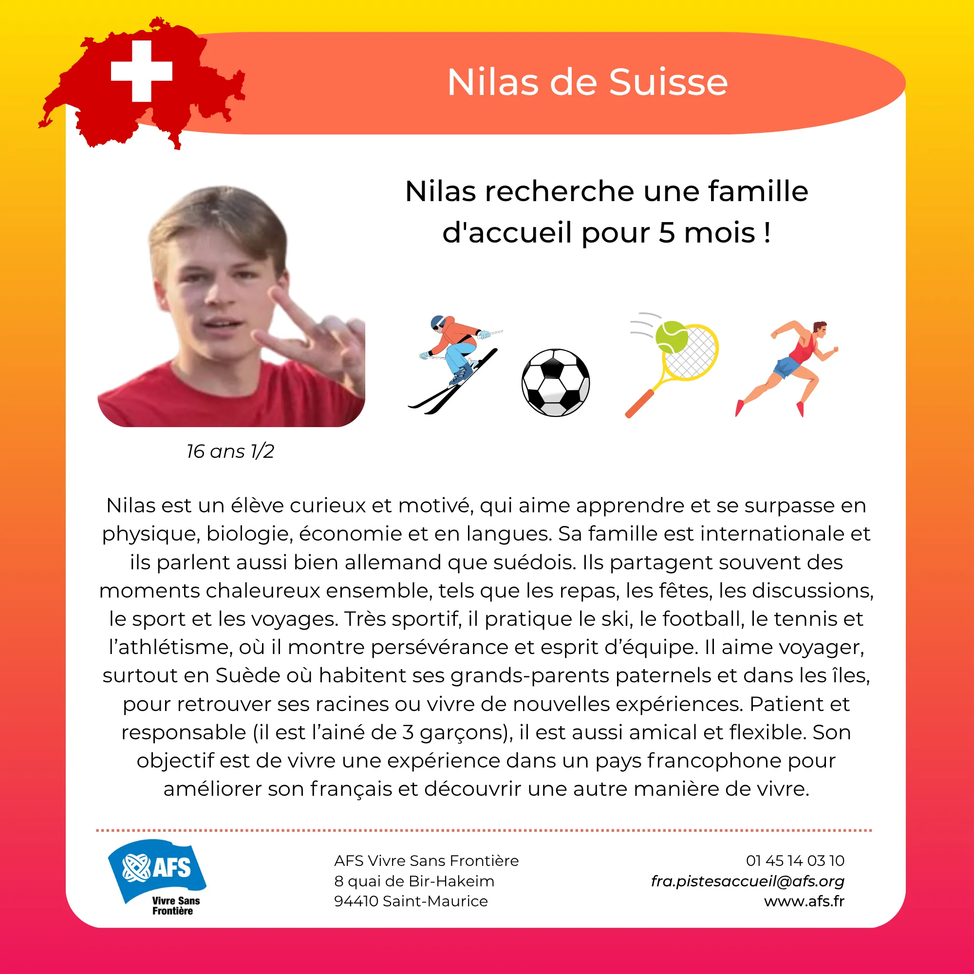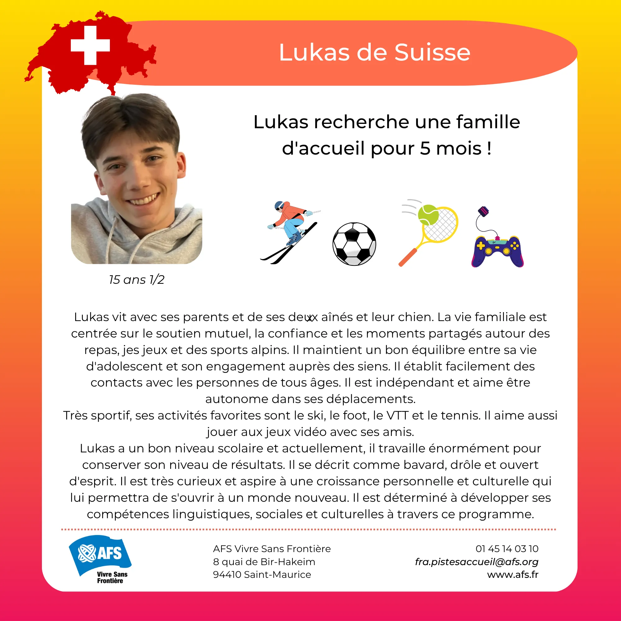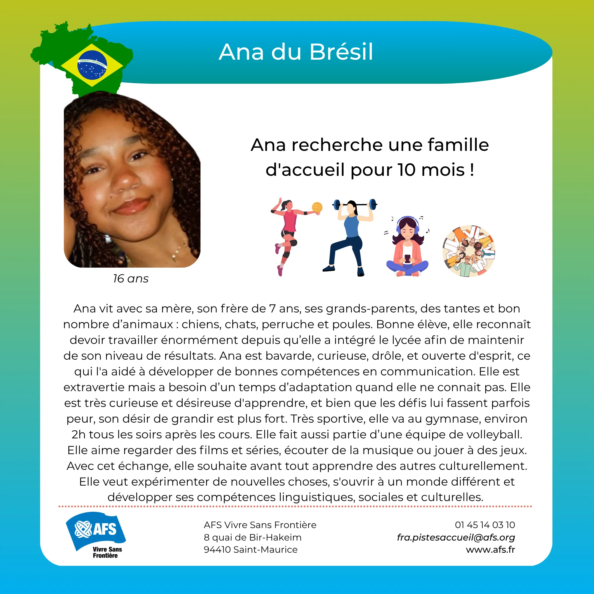Vous pouvez également contacter Aurélie du Siège National d’AFS Vivre Sans Frontière à l’adresse e-mail [email protected] ou au 06 59 22 69 92.